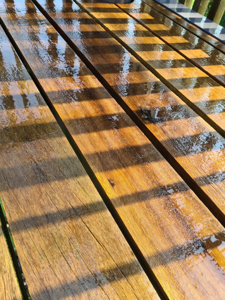Als het vuil gaat inwerken op de verf vindt er verkleuring en onthechting van de verf plaats wat uiteindelijk het hout aangetast.
